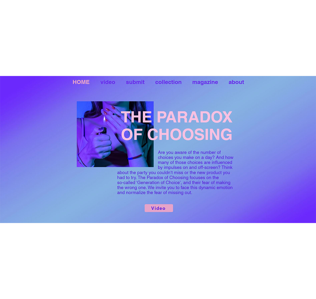 This collaborative project deals with the subject ‘FOMO’ and translates it through 3 different transmedia types (Short-film, magazine, interactive website).